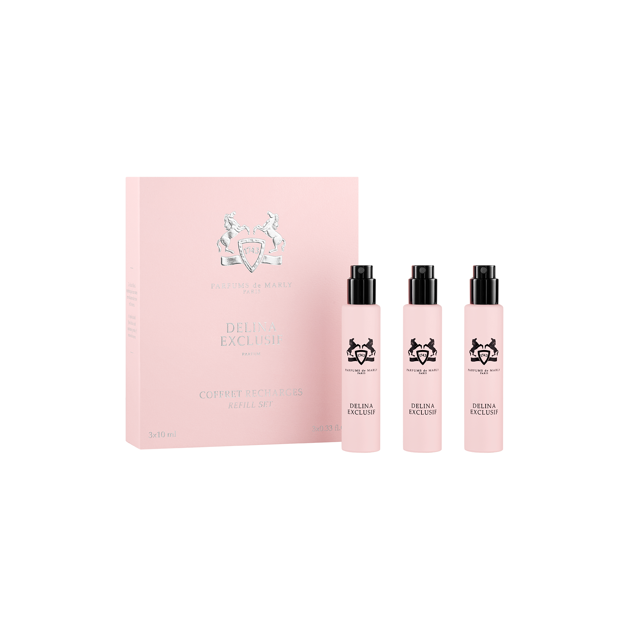 The Delina Exclusif Refill Set elegantly extends the art of perfumery. It includes three 10 ml refills, perfectly designed for the Parfums de Marly Travel Case. A creation that remains true to the Maison’s playful and distinctive spirit.
